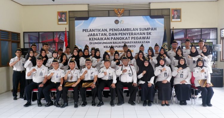 PURWOKERTO – Balai Pemasyarakatan (Bapas) Kelas II Purwokerto melaksanakan kegiatan Pelantikan dan Pengambilan Sumpah Pejabat Manajerial sekaligus Penyerahan SK Kenaikan Pangkat bagi pegawai pada Senin (9/2). Acara yang berlangsung di Aula Bapas Purwokerto ini dipimpin langsung oleh Kepala Bapas Purwokerto, Bluri Wijaksono.