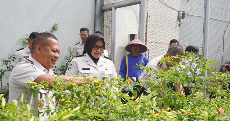 Kepala Kantor Wilayah Direktorat Jenderal Pemasyarakatan Jawa tengah, Mardi Santoso bersama Kepala Lapas Kelas IIA Purwokerto, Ali Andra Harahap secara simbolis melaksanakan panen cabai yang telah siap dipetik.