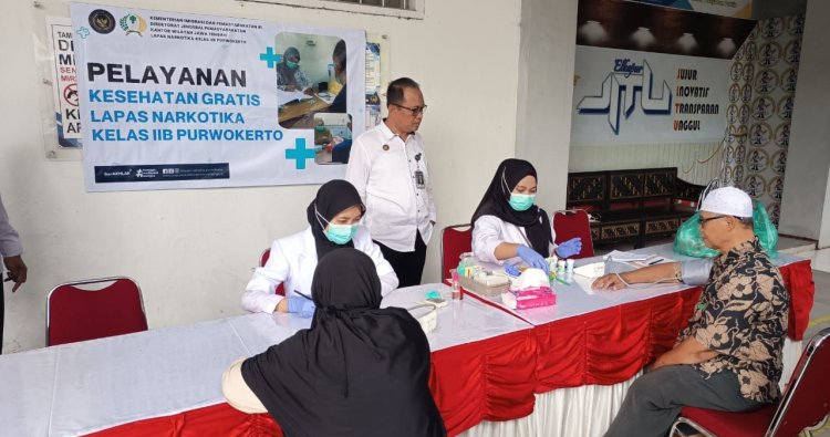 Tim medis Lapas Narkotika Purwokerto yang terdiri dari dokter dan perawat memberikan layanan pemeriksaan dasar seperti pengecekan tekanan darah, gula darah, kolesterol, asam urat serta konsultasi kesehatan umum dan pemberian obat secara gratis.