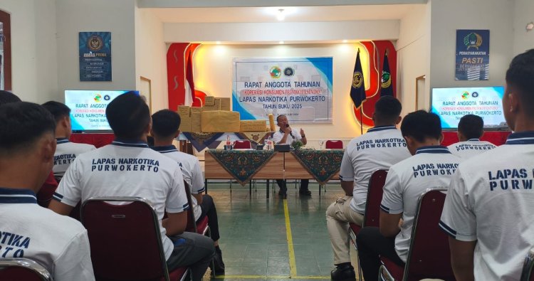 Purwokerto – Primer Koperasi Pemasyarakatan Indonesia (Primkopasindo) Lembaga Pemasyarakatan (Lapas) Narkotika Kelas IIB Purwokerto menyelenggarakan Rapat Anggota Tahunan (RAT) Tahun Buku 2025 sebagai wujud akuntabilitas dan transparansi pengelolaan koperasi, bertempat di aula Pandawa, Sabtu (24/01/2026)