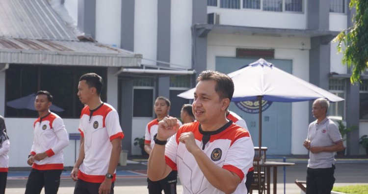 Suasana pagi yang cerah menambah semangat peserta untuk berolahraga bersama, menciptakan momen kebersamaan yang hangat di antara sesama pegawai.