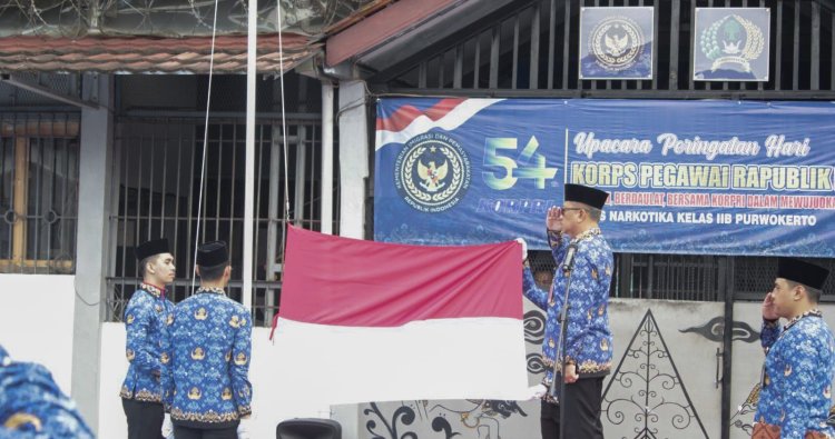 Purwokerto - Lembaga Pemasyarakatan (Lapas) Narkotika Kelas IIB Purwokerto melaksanakan upacara bendera dalam rangka memperingati Hari Ulang Tahun (HUT) Korps Pegawai Republik Indonesia (KORPRI) ke-54 tahun 2025 dengan penuh khidmat, Senin (01/12/2025).